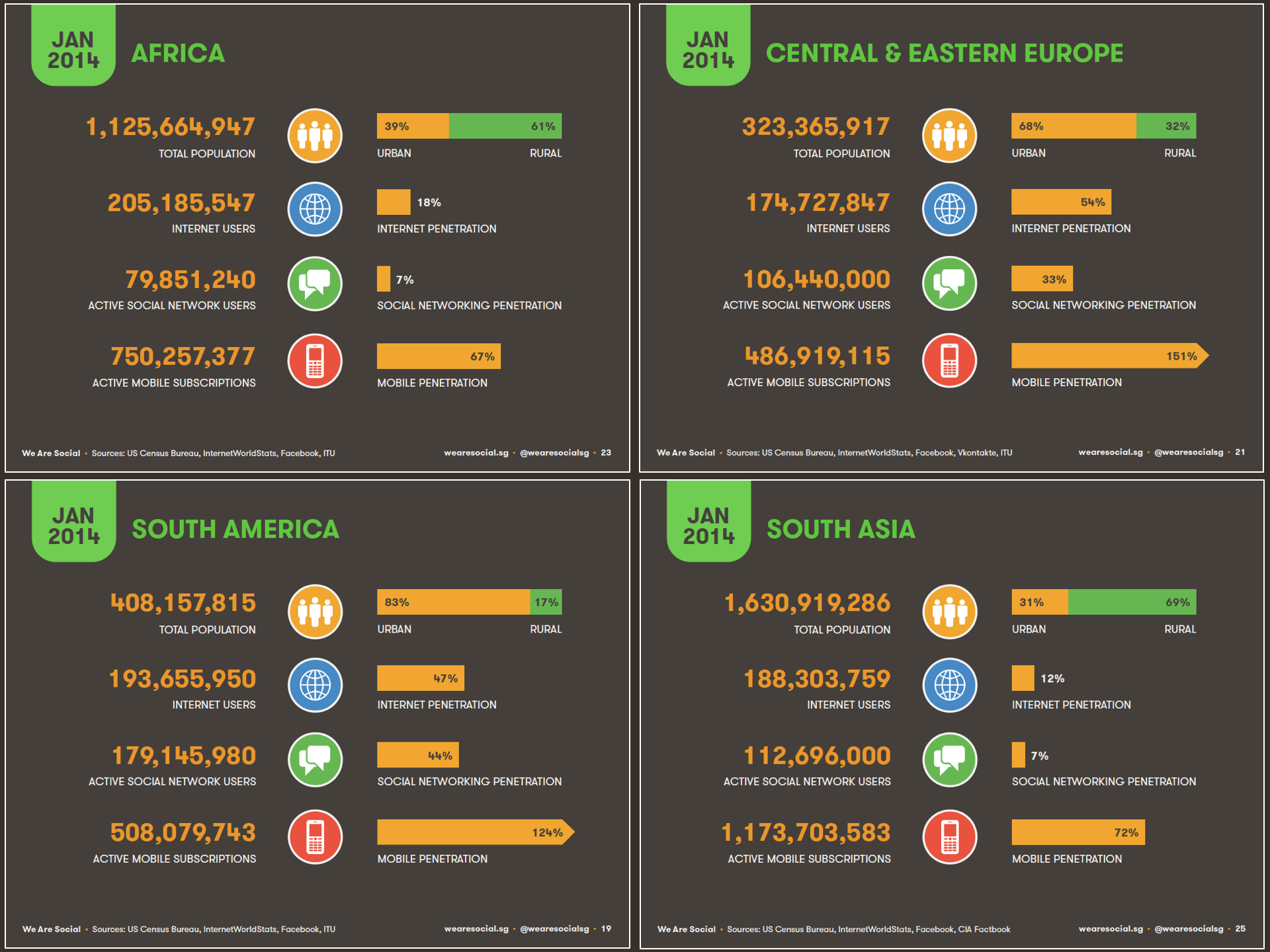 We offered regional snapshots again in the 2014 report too, allowing for some interesting comparisons between different parts of the world: